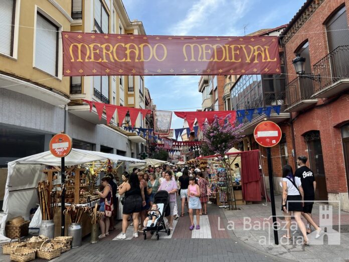 La Bañeza volvió ayer al medievo con el esperado inicio del Mercado Medieval, un evento que, como cada año, transforma las calles del centro en un escenario de época lleno de historia, color y tradición. La apertura oficial del mercado tuvo lugar a las seis de la tarde, aunque no fue hasta las ocho cuando se celebró el pregón inaugural, a cargo del trovador Crispín d’Olot, quien dio el pistoletazo de salida con su característico humor y lirismo.