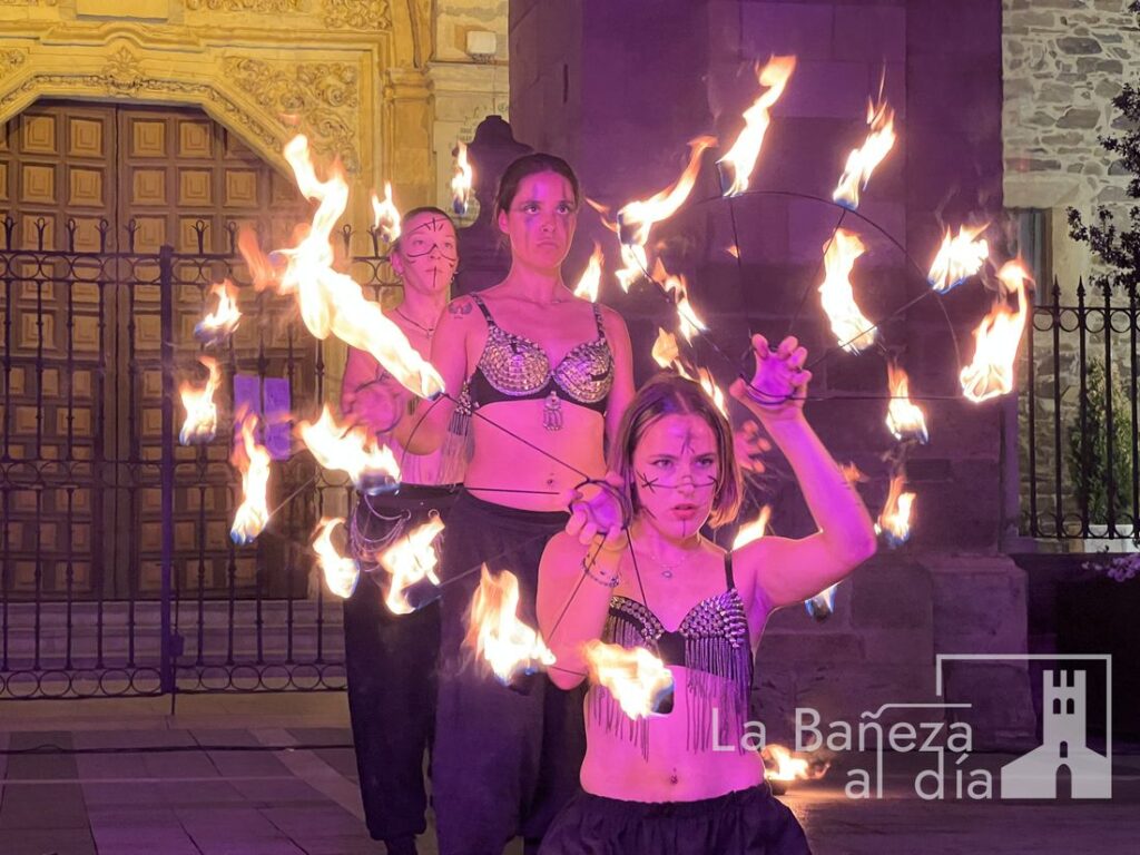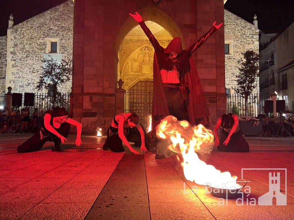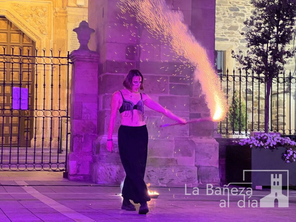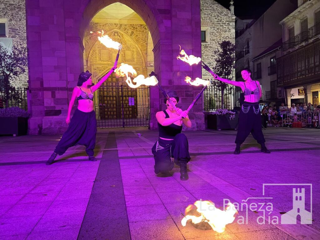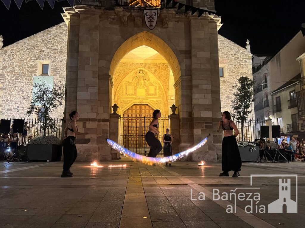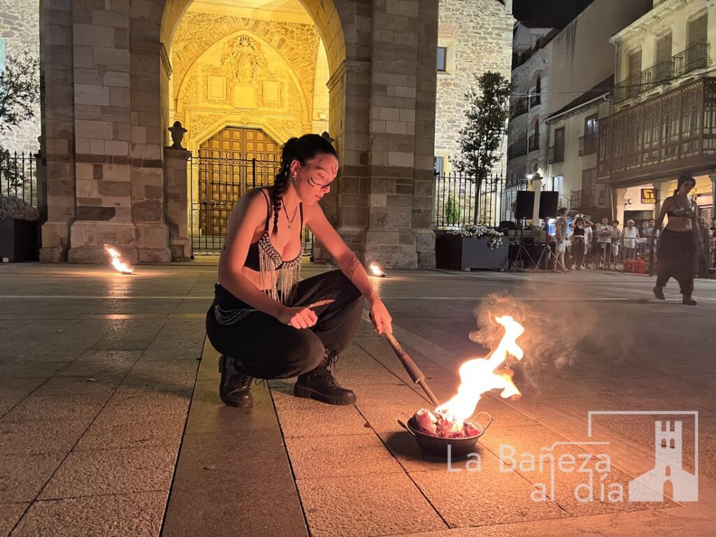 El Mercado Medieval de La Bañeza arrancó este martes con un ambiente festivo que ha llenado la ciudad de color, historia y actividades para todos los públicos. Uno de los momentos más esperados tuvo lugar en la noche de este miércoles, cuando la Plaza Mayor se transformó en el escenario de un espectáculo nocturno de fuego y pirotecnia que dejó impresionados a los asistentes.
