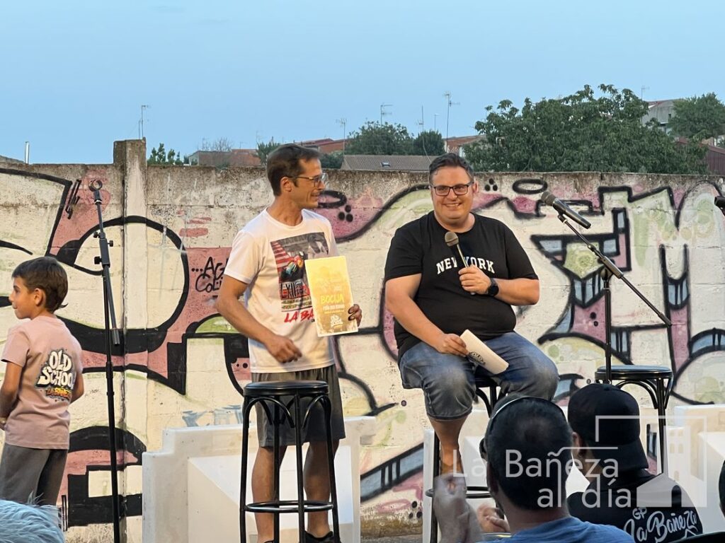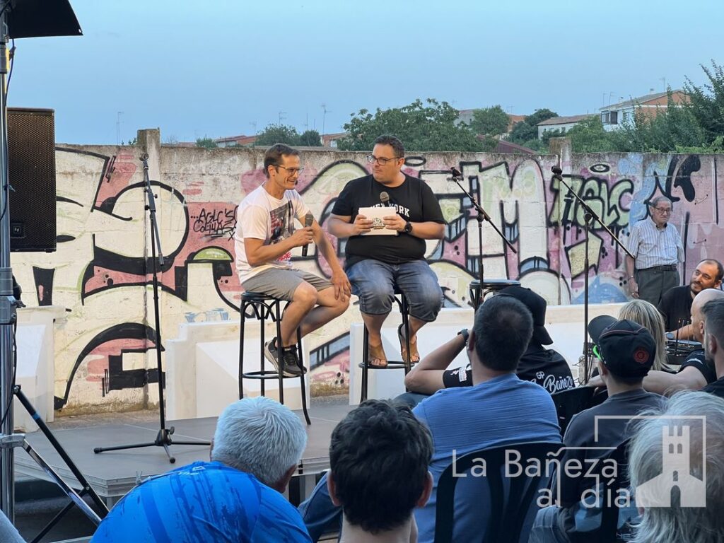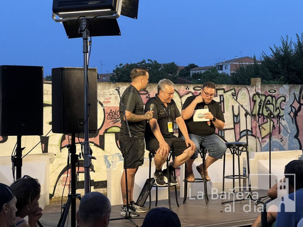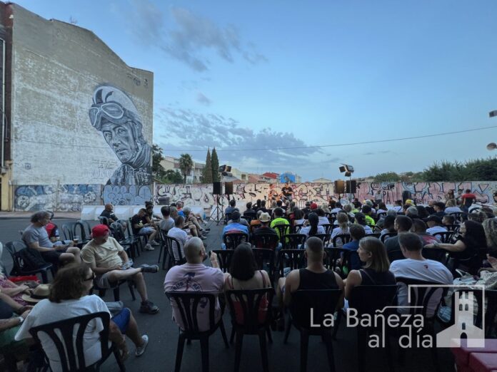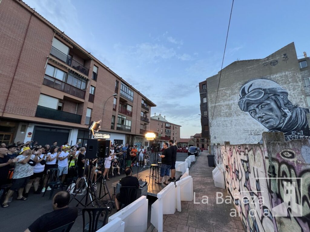 La Bañeza vivió este viernes por la noche una velada para el recuerdo con motivo de la Charla Coloquio 4.0 del Gran Premio de La Bañeza LXIV, organizada por la Peña Old School en la calle Santa Elena, frente al emblemático graffiti de Ángel Nieto.