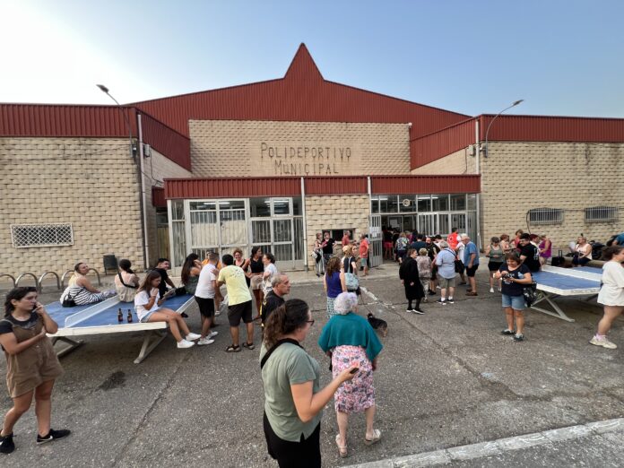 En el polideportivo se encuentra Cruz Roja coordinando el operativo y ofreciendo bebida ante las altas temperaturas.
