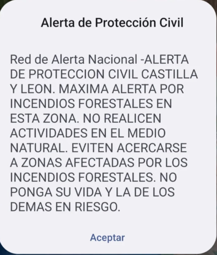 En torno a las tres y media de la tarde de este sábado 16 de agosto, los ciudadanos de la provincia de León recibían una alerta en sus teléfonos móviles relativa a los incendios forestales.