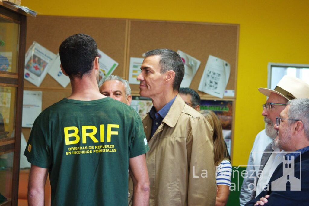 El presidente del Gobierno, Pedro Sánchez, ha visitado este viernes la base de las Brigadas de Refuerzo de Incendios Forestales (BRIF) de Tabuyo del Monte, en la provincia de León, en lo que supone su segunda visita a la provincia en menos de un mes.