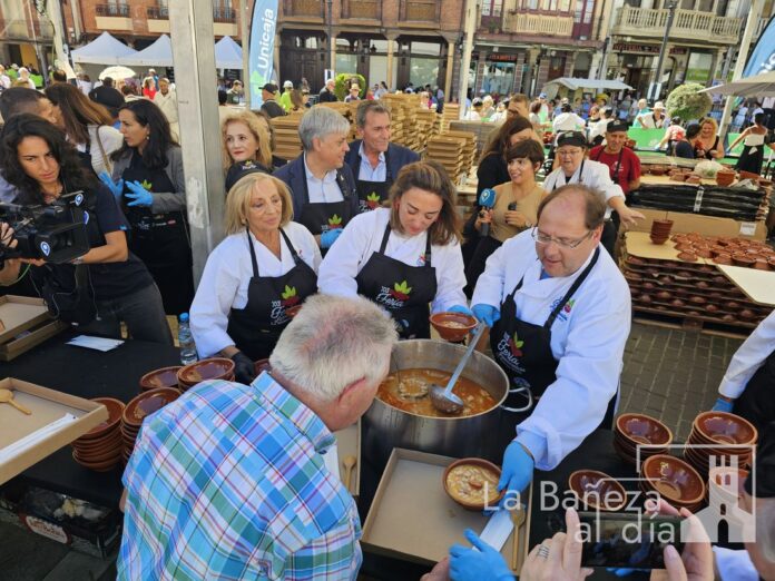 Esta cita, consistente en el reparto de 4.500 raciones de guiso de alubias de La Bañeza que, cocinadas a fuego lento por un equipo de 15 cocineros, forma parte de un menú que también cuenta con chicharro en escabeche como entrante y Bollo de San Lázaro como postre, se completa con la entrega del premio de ‘Alubiero Mayor’.