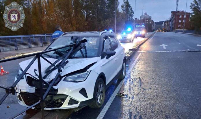 El siniestro ha tenido lugar en torno a las 07.22 horas de este sábado y según se puede ver en las imágenes, un turismo ha impactado contra la valla metálica situada en la mediana de la calzada, que ha atravesado la luna del vehículo.