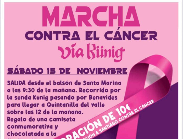 El próximo sábado 15 de noviembre se celebrará una marcha solidaria contra el cáncer que recorrerá la histórica Vía Künig, un enclave reconocido por su belleza natural y su valor cultural. La iniciativa tiene como objetivo apoyar a la Asociación Santiago Contra el Cáncer y concienciar a la población sobre la importancia de la lucha contra esta enfermedad.