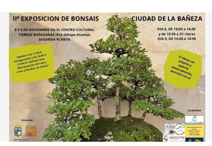Durante los días 8 y 9 de noviembre, el Centro Cultural Tierras Bañezanas acogerá la segunda Exposición de Bonsáis “Ciudad de La Bañeza”, que se celebrará en la segunda planta del edificio.