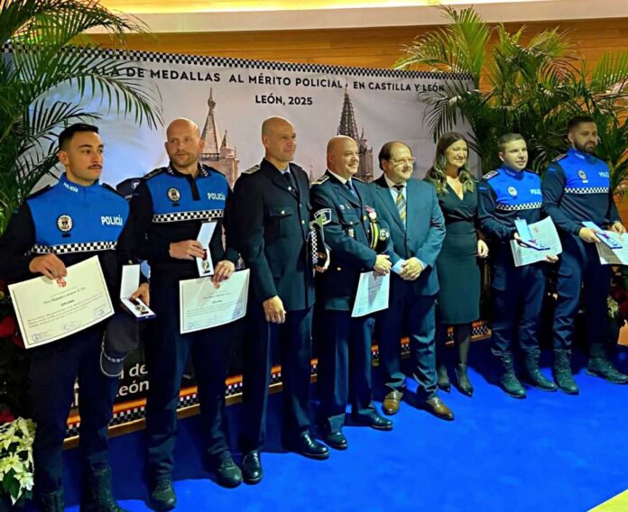 La Policía Local de La Bañeza ha sido reconocida por su compromiso, entrega y trayectoria de servicio durante la gala celebrada el pasado viernes en el auditorio de la ciudad de León, en la que estuvo presente el alcalde de la ciudad, Javier Carrera, y la concejala del área, Elena Baílez. La Junta de Castilla y León ha hecho entrega de varias Medallas de Plata al Mérito Policial, tanto a título individual como colectivo, destacando intervenciones que han salvado vidas y labores de coordinación en eventos de gran impacto.