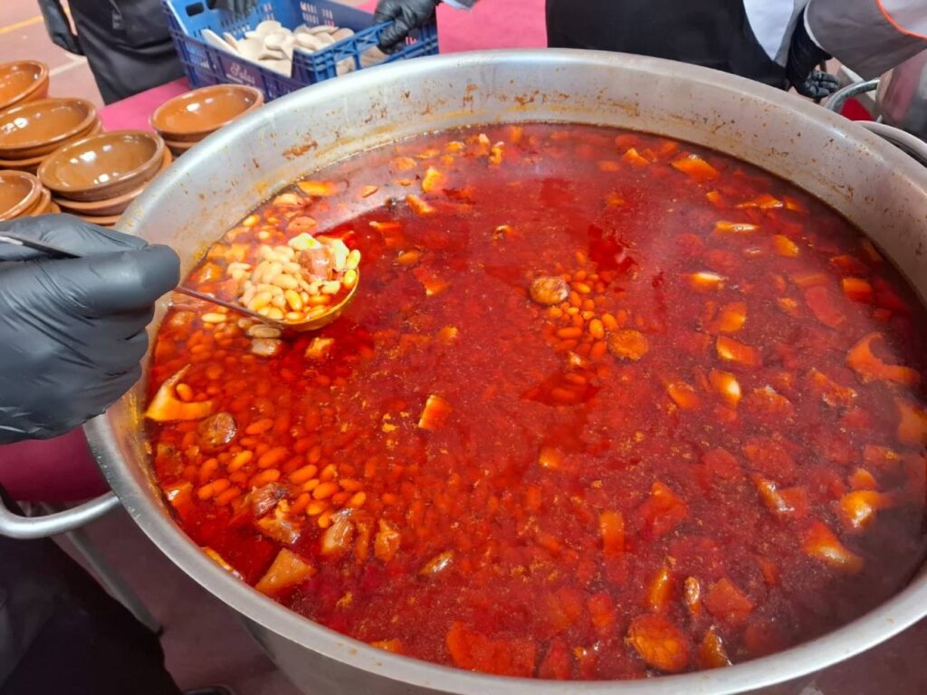 El punto culminante de la actividad llegó a las 14:30 horas con la celebración de la tradicional alubiada solidaria en el Colegio San José de Calasanz. El menú estuvo compuesto por pica pica, un plato de alubias IGP, postre, café y bebidas. Como detalle especial, cada participante recibió un cuenco de barro y una cuchara conmemorativa.