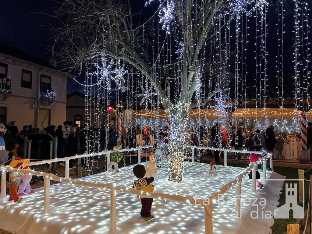 El encendido de las luces se realizó de forma progresiva, acompañado de un animado baile navideño, hasta llegar a la esperada cuenta atrás en la que se iluminó el gran árbol. Tras el acto, los asistentes pudieron disfrutar de un chocolate caliente. Además, las personas que visiten el pueblo podrán recorrer las distintas zonas decoradas gracias al tren turístico habilitado especialmente para estas fechas.