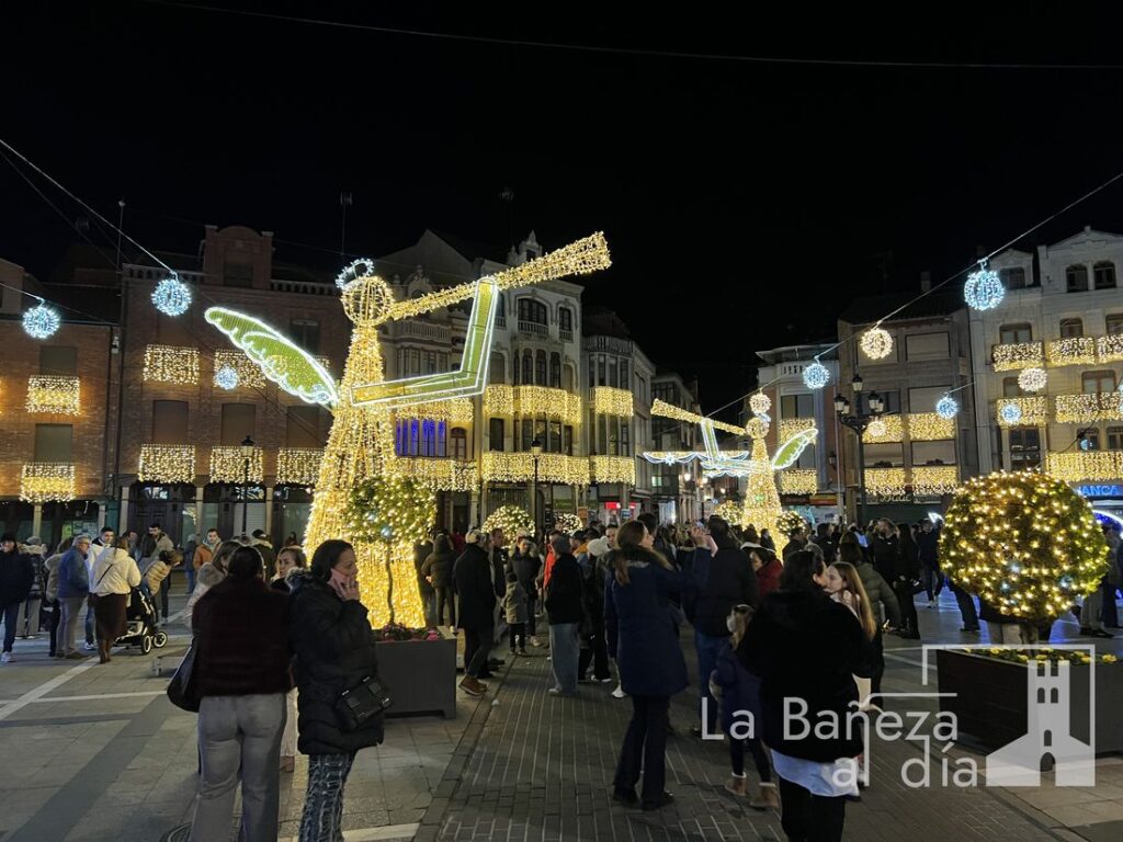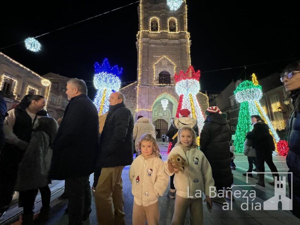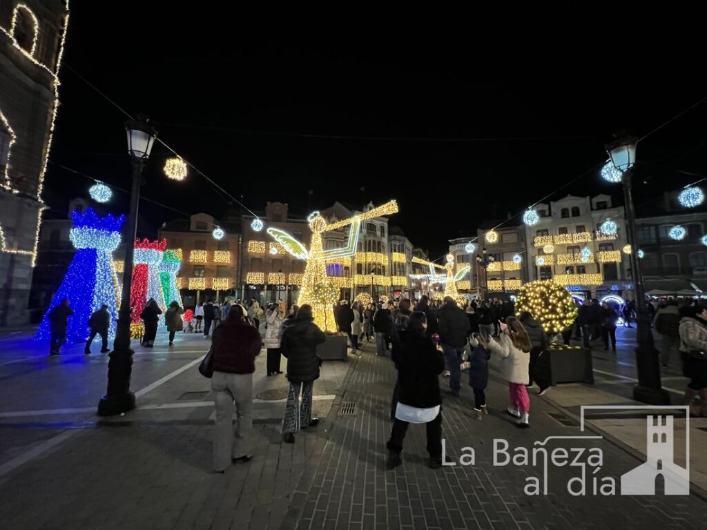 La Bañeza dio esta tarde el pistoletazo de salida a la Navidad con el tradicional encendido de luces, un evento muy esperado que volvió a reunir a numerosos vecinos y visitantes en la plaza Mayor. Entre aplausos y una cuenta atrás coreada por los asistentes, la iluminación navideña se encendió simultáneamente en la plaza y en las calles aledañas, creando un ambiente de ilusión y celebración.