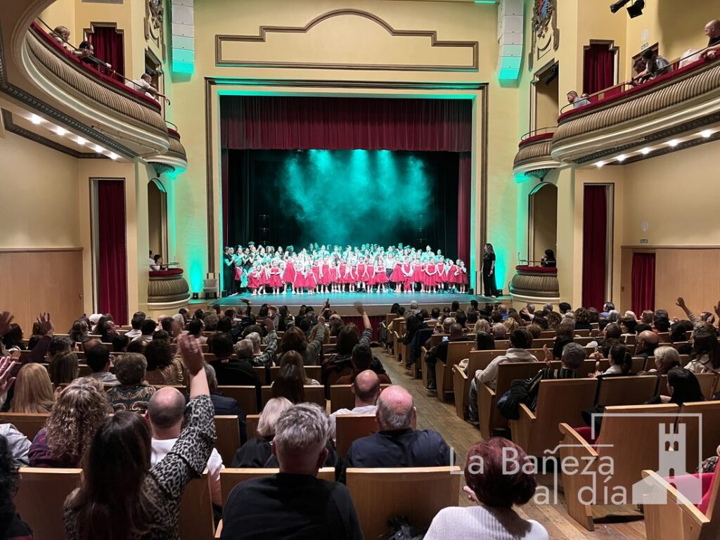 El Teatro Municipal de La Bañeza se llenó en la tarde de este viernes hasta la última butaca para disfrutar del tradicional “Cuento de Navidad”, puesto en escena por el Estudio de Danza y Pilates Ana Gema Quesada. El espectáculo conquistó al público gracias al talento de alumnos de todas las edades que demostraron una gran calidad artística, sorprendiendo con cuidados cambios de vestuario y de estilo, y haciendo las delicias de los asistentes.