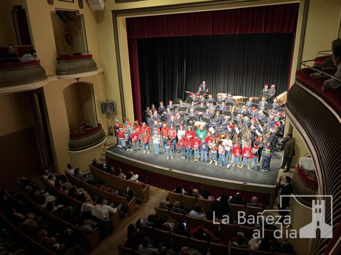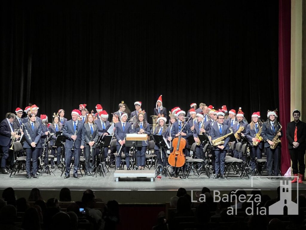 La Banda Municipal de Música de La Bañeza celebró en la tarde de este sábado su tradicional Concierto de Navidad en el Teatro Municipal, que registró un lleno absoluto para disfrutar de una de las citas culturales más esperadas del cierre de año.