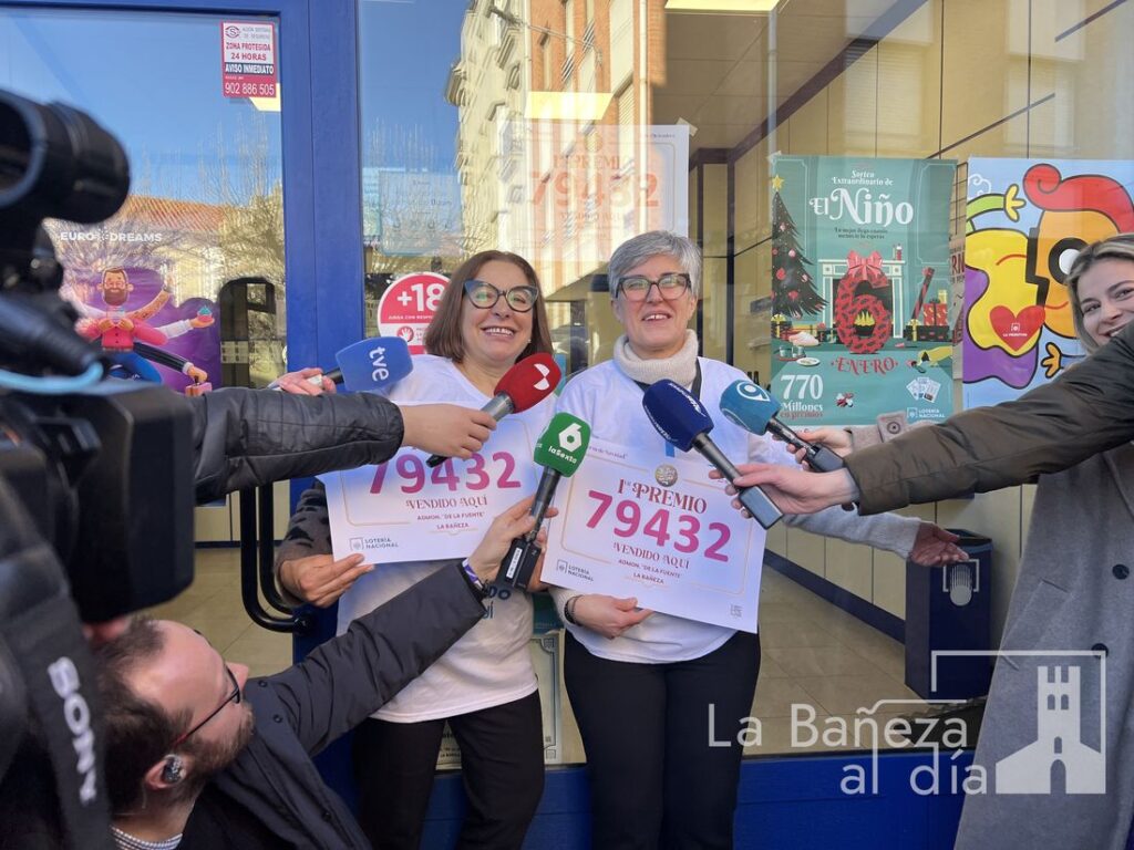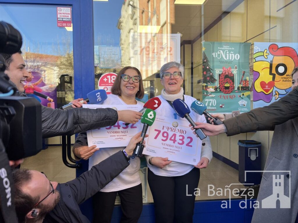 Desde primera hora de la mañana, La Bañeza despertaba con la mejor de las noticias al escuchar cómo el número 79.432 era cantado en el sorteo extraordinario de la Lotería de Navidad. Minutos después se confirmaba que se trataba del Gordo, el primer premio, vendido en la administración de loterías de Ana, en pleno corazón de la ciudad.