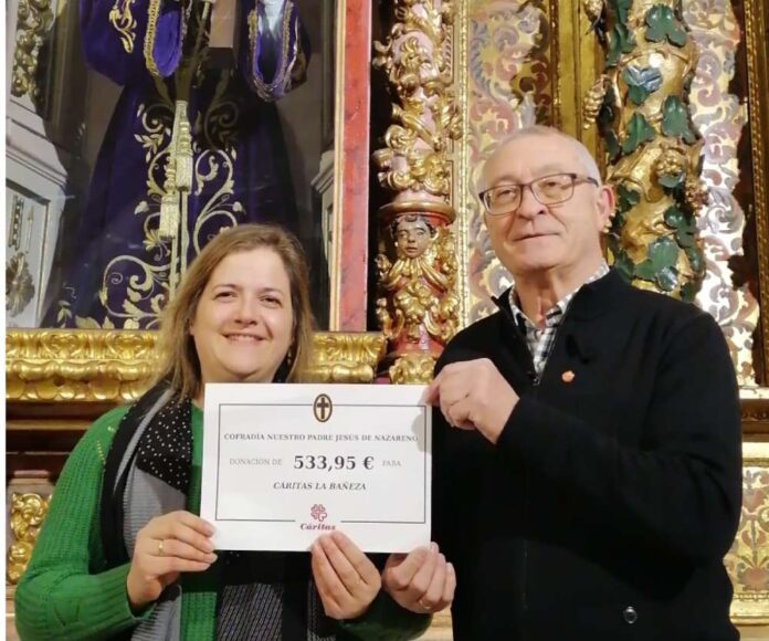 El acto de entrega contó con la presencia de Cristina Quiñones Prieto, Juez de la Cofradía de Nuestro Padre Jesús Nazareno, y Ceferino Martínez, presidente de Cáritas La Bañeza, quienes destacaron la importancia de este tipo de iniciativas solidarias para atender a las personas y familias más necesitadas del municipio.