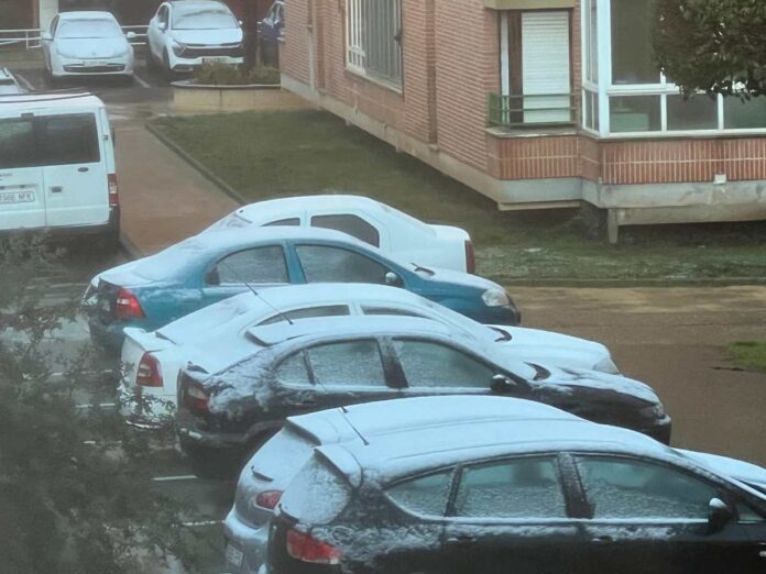 A primera hora de la mañana, el manto blanco era visible de forma ligera en coches, tejados y parques, dejando una estampa invernal sin causar incidencias destacables.