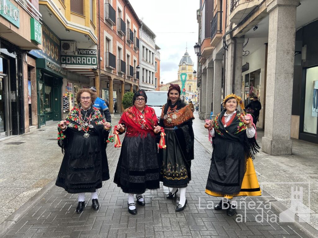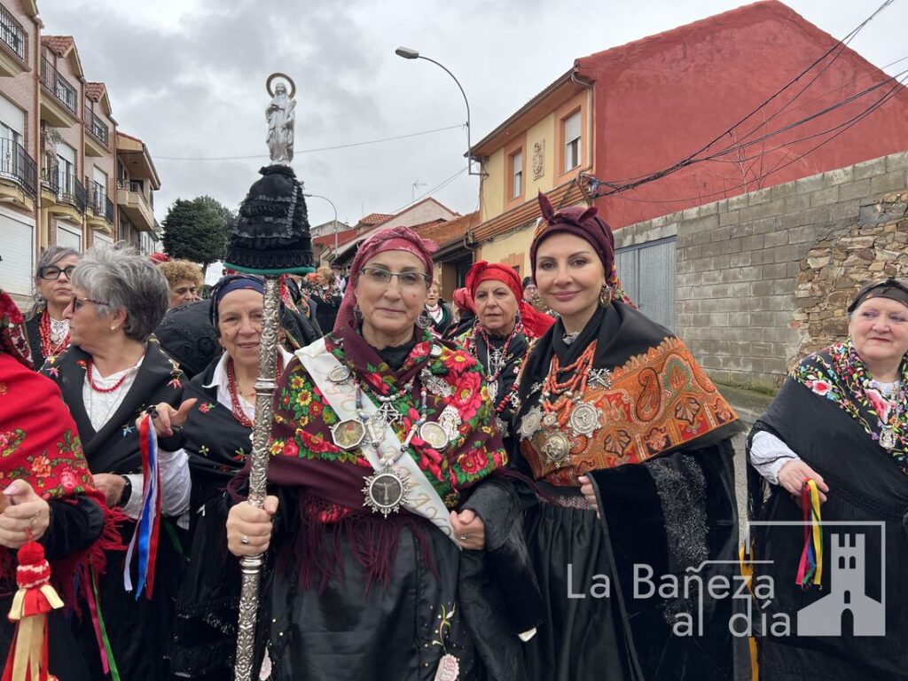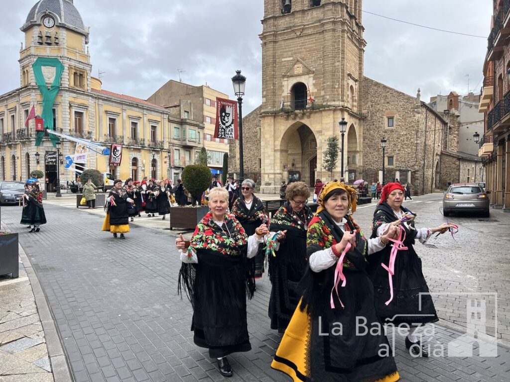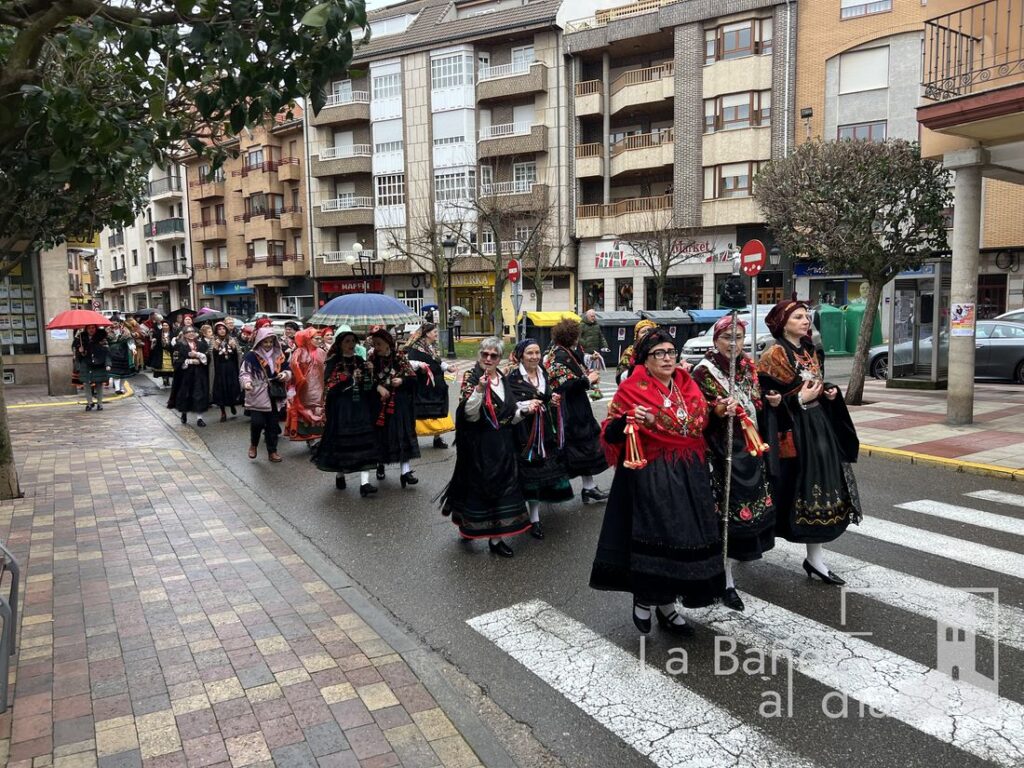 La Cofradía Penitencial de las Águedas de la ciudad de La Bañeza celebró este jueves, 5 de febrero, la festividad de Santa Águeda, una jornada marcada por la convivencia, la tradición y el colorido de los mantones y pañuelos de seda con los que las cofrades recorrieron las calles de la ciudad. A pesar de que la lluvia estuvo presente durante todo el día, no impidió que continuaran los actos ni que se mantuviera el ambiente festivo y de baile.