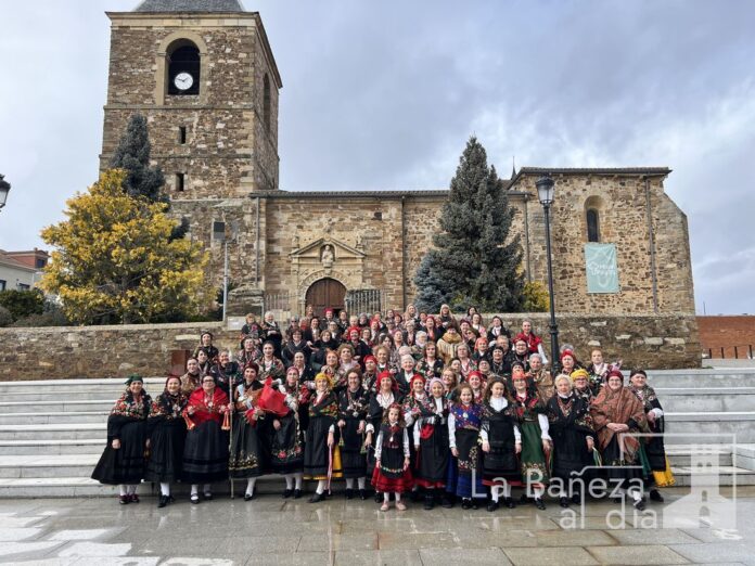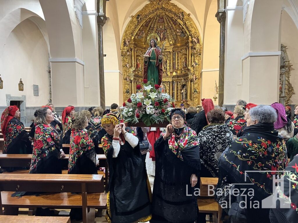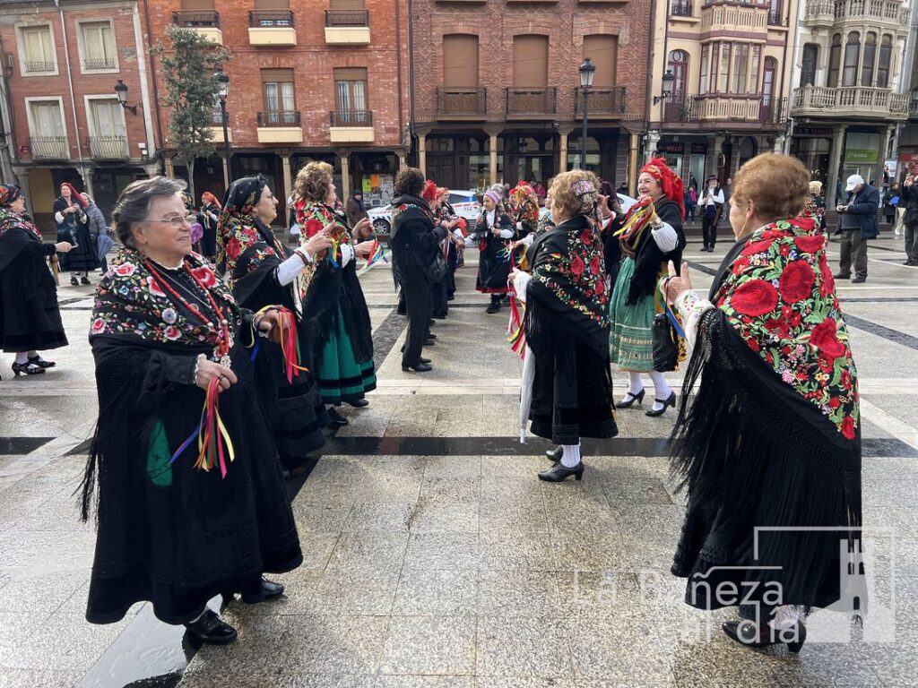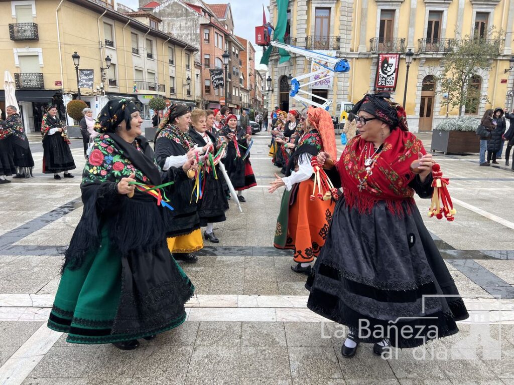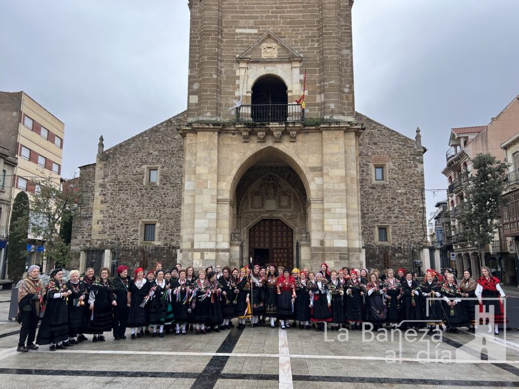 La Cofradía Penitencial de las Águedas de la ciudad de La Bañeza celebró este jueves, 5 de febrero, la festividad de Santa Águeda, una jornada marcada por la convivencia, la tradición y el colorido de los mantones y pañuelos de seda con los que las cofrades recorrieron las calles de la ciudad. A pesar de que la lluvia estuvo presente durante todo el día, no impidió que continuaran los actos ni que se mantuviera el ambiente festivo y de baile.