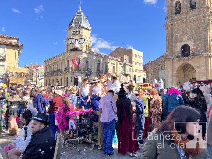 El sol acompaña y ha llegado el esperado Sábado de Chispas, una de las jornadas más representativas del Carnaval de La Bañeza. Un día en el que la ciudad entera se disfraza para destapar la esencia del carnaval bañezano, inundando las calles de salero, ingenio y desparpajo tanto de vecinos como de visitantes de la comarca.