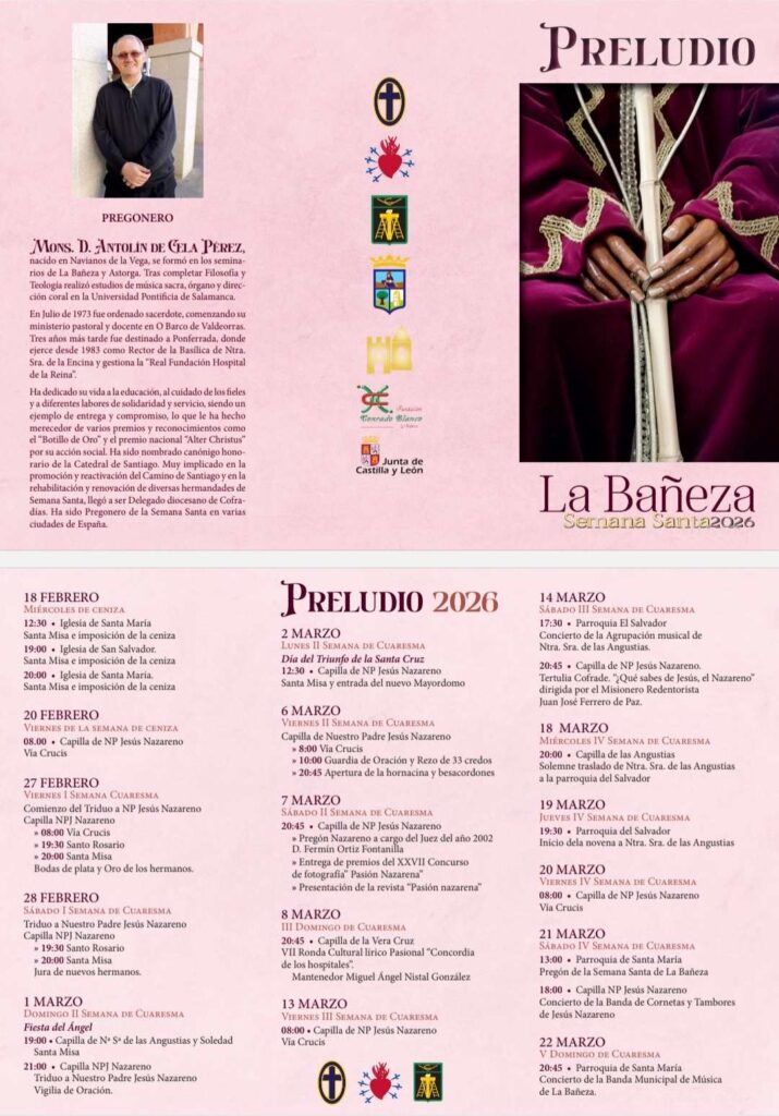 Tras la finalización del Carnaval y ya inmersos en el tiempo litúrgico de la Cuaresma, se han dado a conocer los actos organizados en La Bañeza con motivo del Preludio 2026 de la Semana Santa.