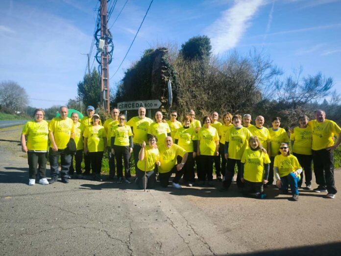 Aprovechando el buen tiempo, el grupo se cruzó con numerosos peregrinos y caminantes. Tras recorrer varias aldeas —Cortobe, Pereiriña, Calzada, Calle y Ferreiros— alcanzaron Salceda, junto a la N-547, donde realizaron una parada para reponer fuerzas después de nueve kilómetros.