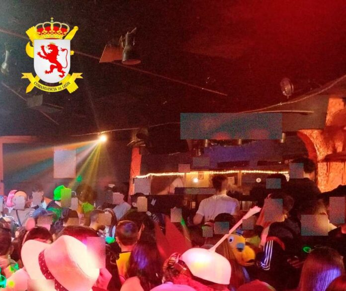 La Guardia Civil ha procedido en la madrugada del pasado domingo al desalojo de una discoteca de El Bierzo donde se superaba ampliamente el aforo permitido. En el interior se encontraban aproximadamente 500 personas, casi el doble de la capacidad máxima autorizada de 275. Esta situación representaba un riesgo serio para los asistentes en caso de emergencia.