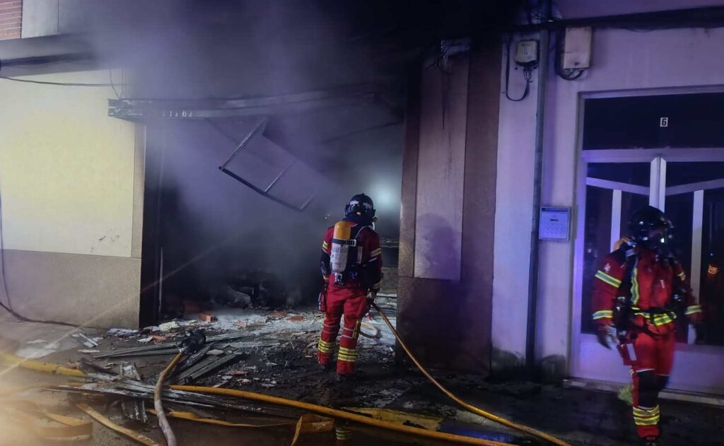 Un incendio declarado en el interior de una cochera con varios vehículos afectados movilizó en la tarde de este viernes a los servicios de emergencia en la calle Manuel Fernández Núñez de La Bañeza.