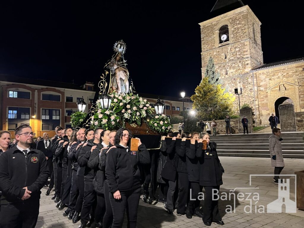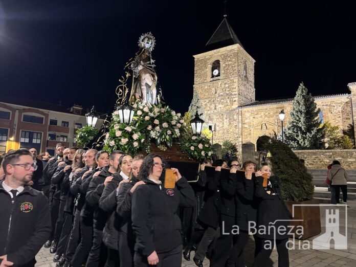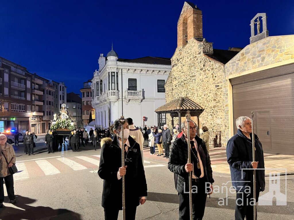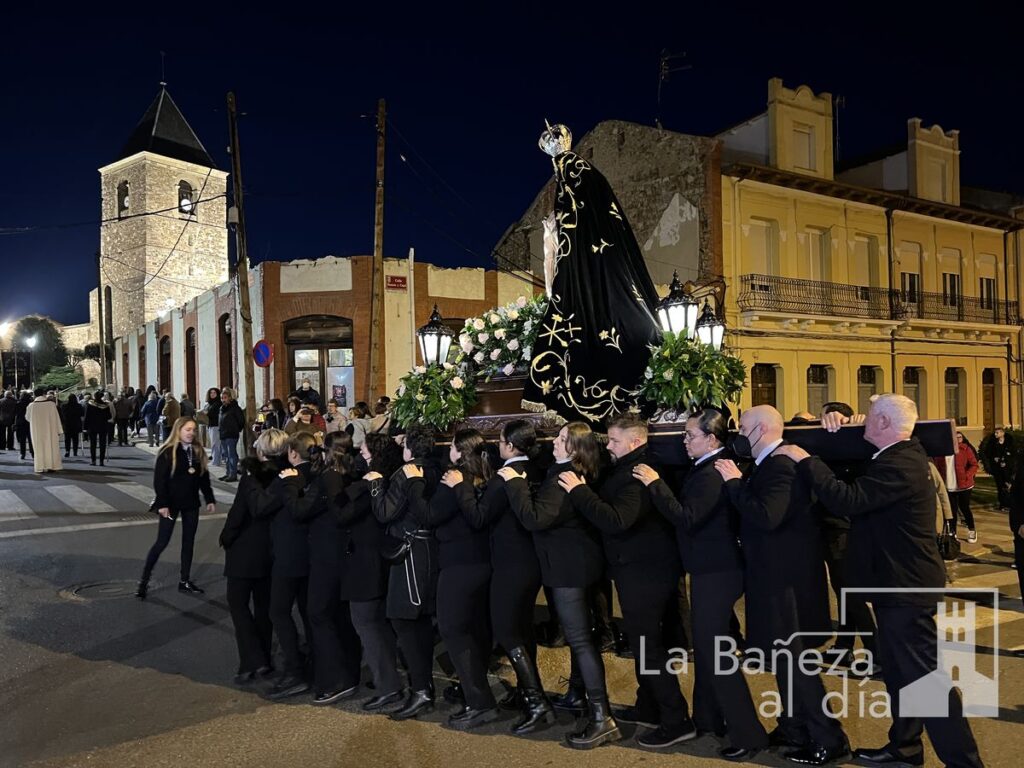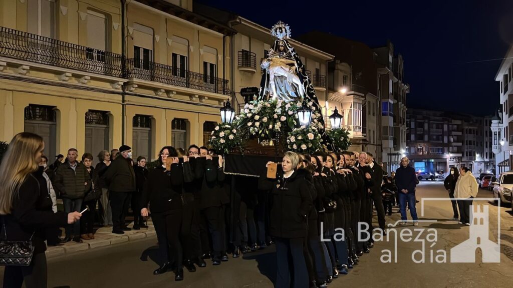 La Bañeza celebró en la tarde de este miércoles el solemne traslado de Nuestra Señora de las Angustias con motivo del inicio de la novena dedicada a la venerada imagen.