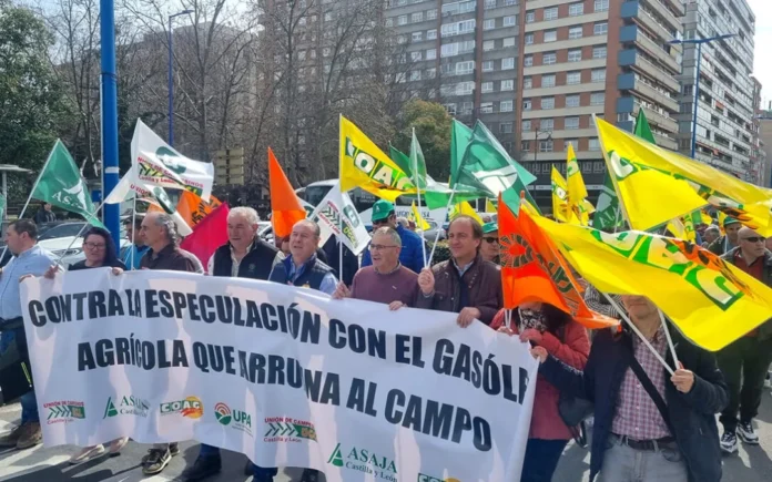 Un millar de agricultores convocados por todas las organizaciones agrarias han vuelto a salir a las calles para  protestar este miércoles en Valladolid contra «la especulación feroz» en los precios el gasóleo agrícola y de los fertilizantes, y para reclamar al Gobierno ayudas directas al sector por la crisis económica derivada de la guerra entre Estados Unidos e Israel contra Irán.