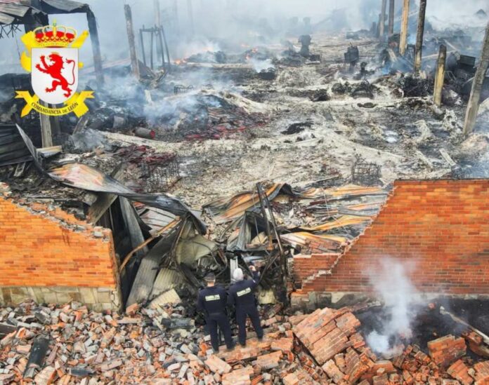 La Guardia Civil avanza en la investigación del incendio en la nave de residuos plásticos en La Bañeza