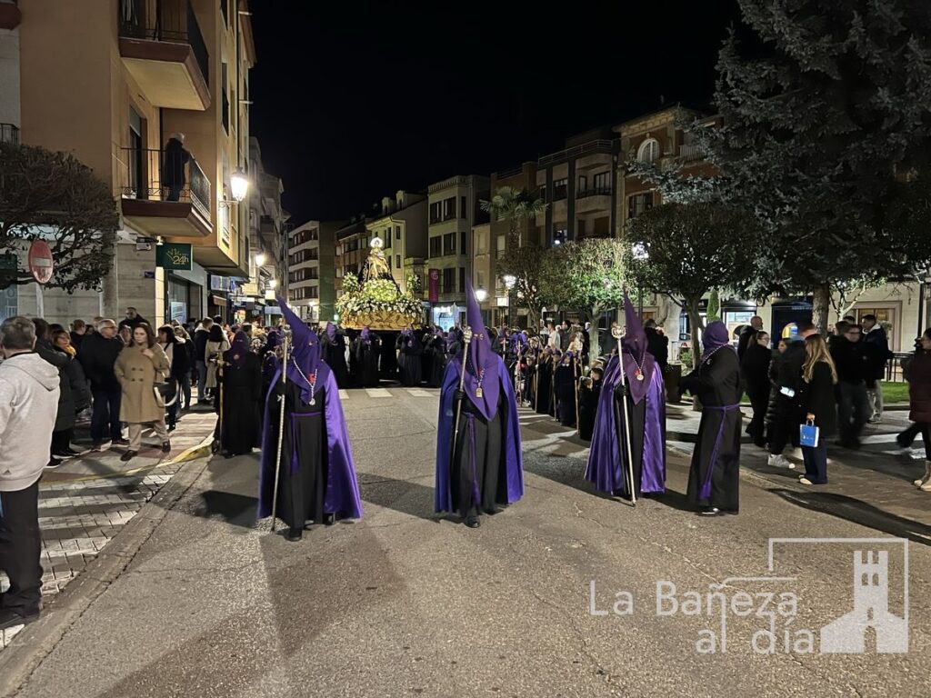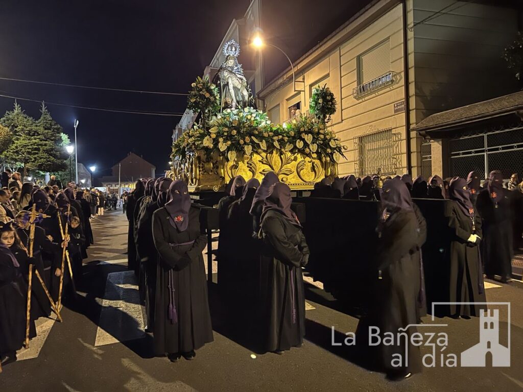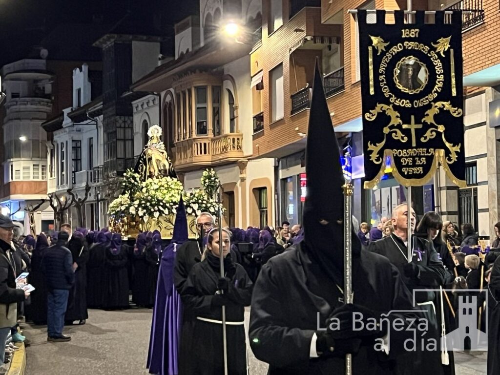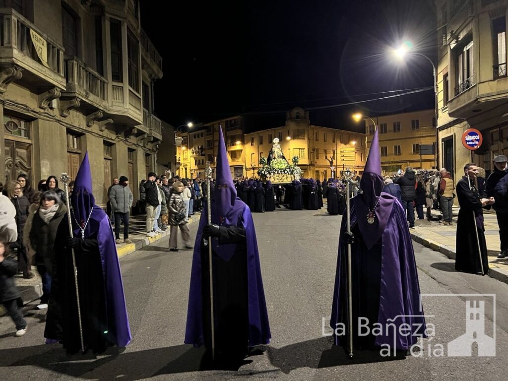 La Bañeza inauguró oficialmente este Viernes de Dolores los actos de la Semana Santa 2026 con la tradicional procesión de Nuestra Señora de las Angustias, que recorrió diversas calles de la ciudad bajo la atenta mirada de cofrades y fieles.