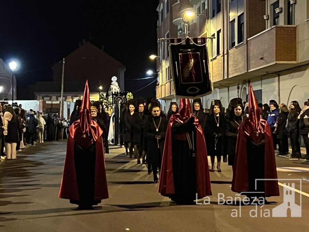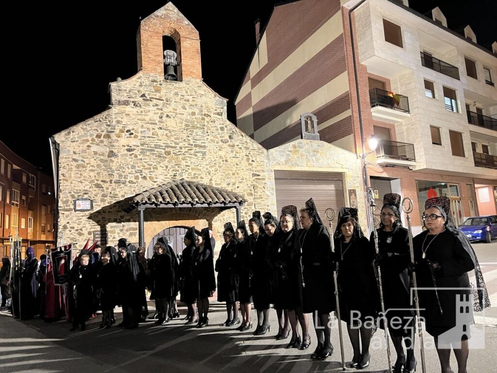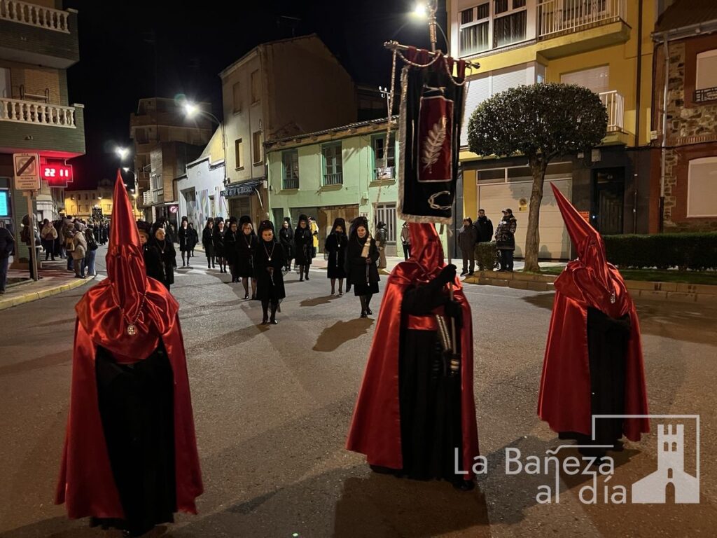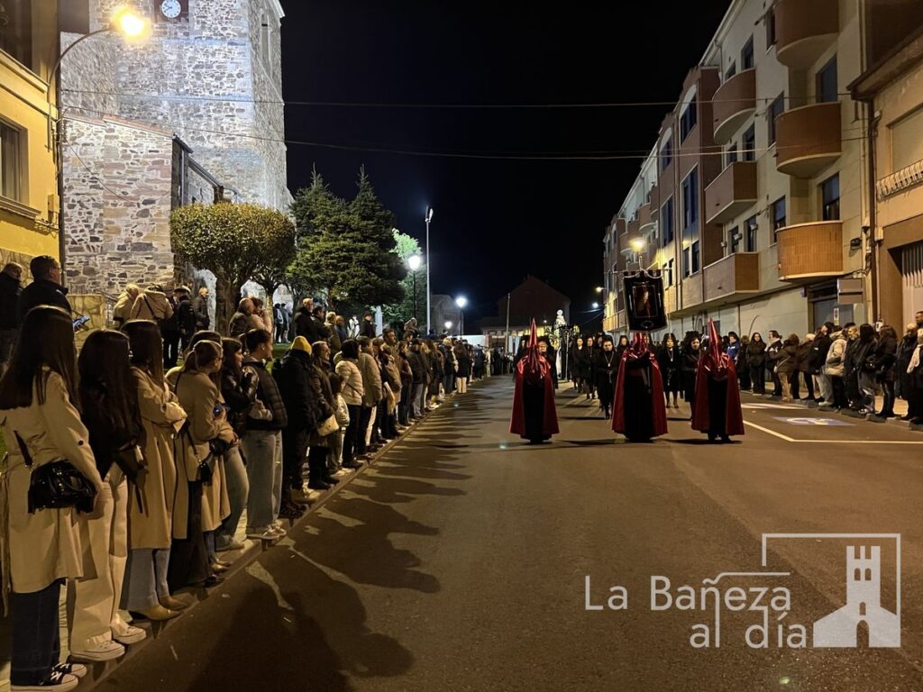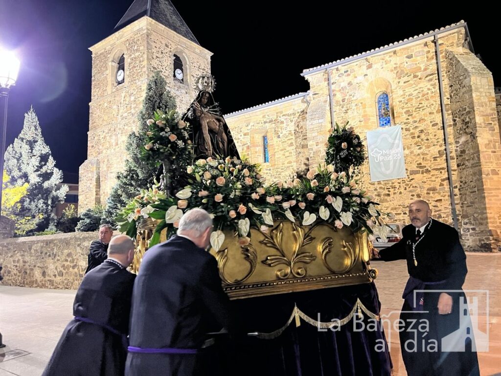 La Bañeza inauguró oficialmente este Viernes de Dolores los actos de la Semana Santa 2026 con la tradicional procesión de Nuestra Señora de las Angustias, que recorrió diversas calles de la ciudad bajo la atenta mirada de cofrades y fieles.