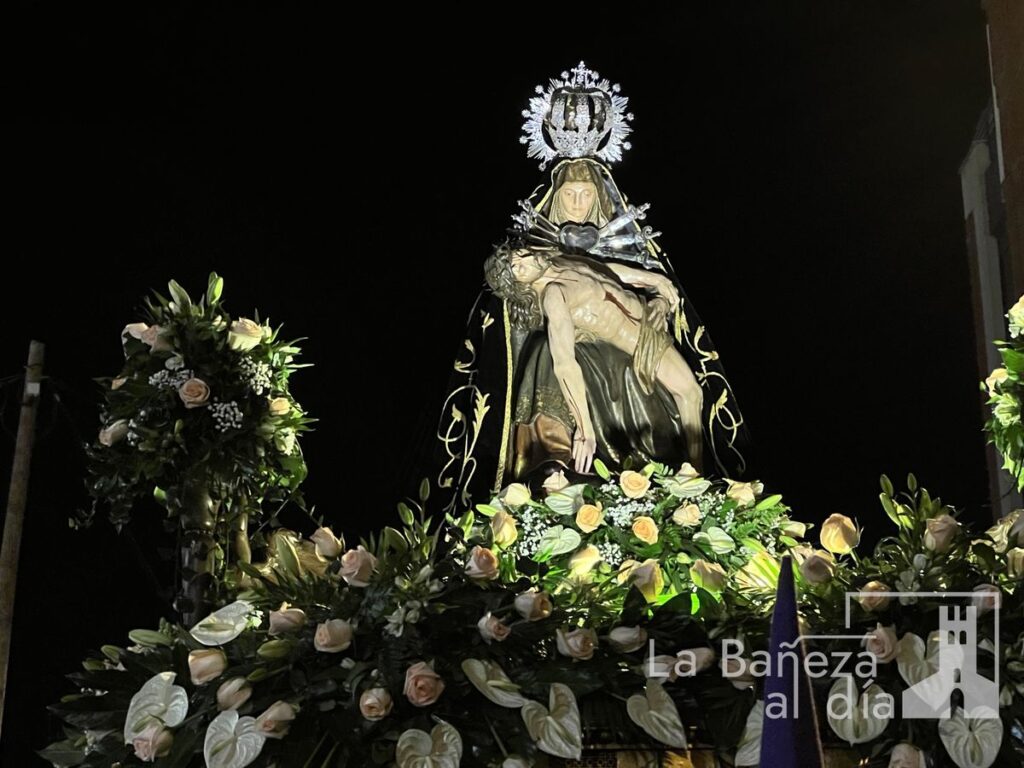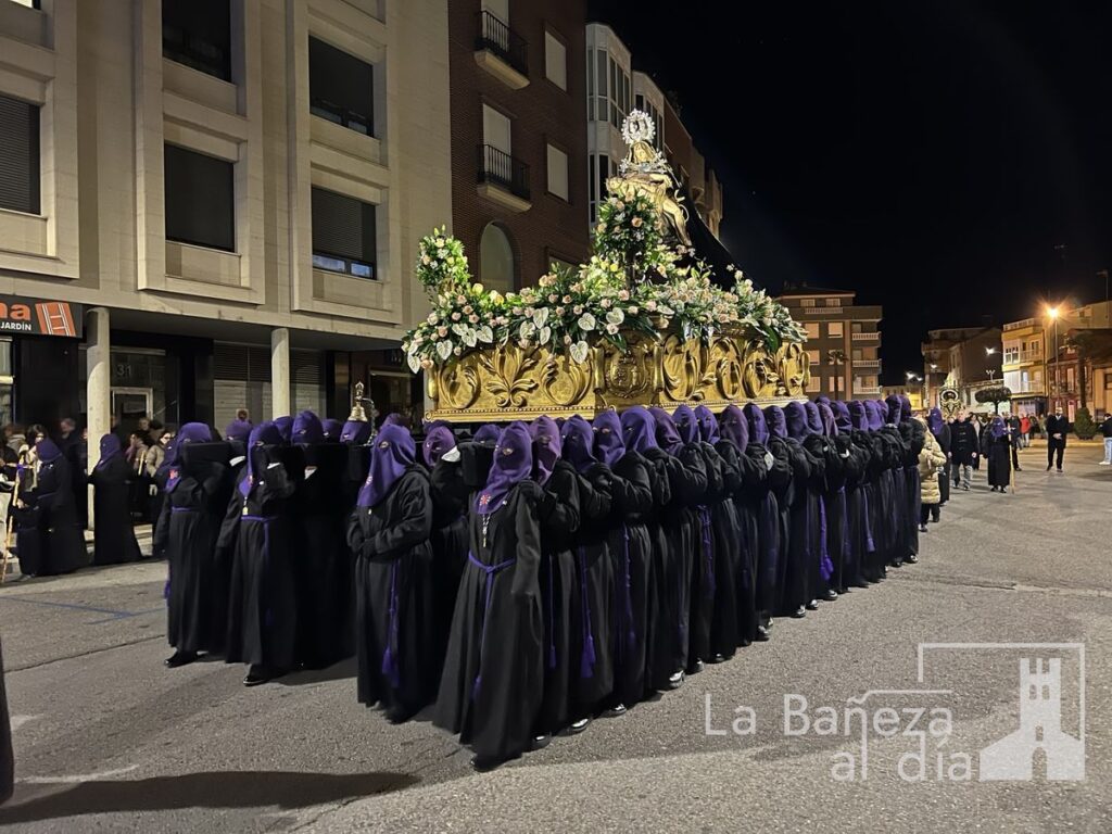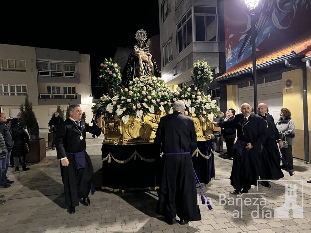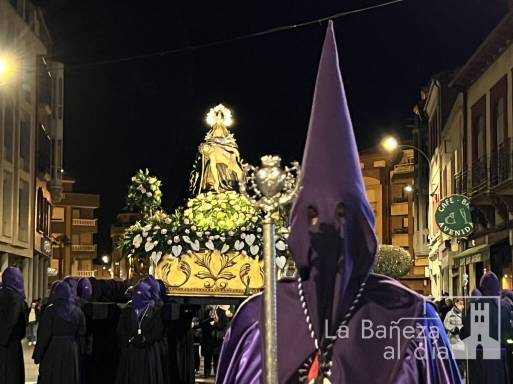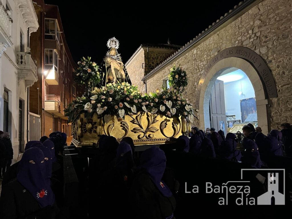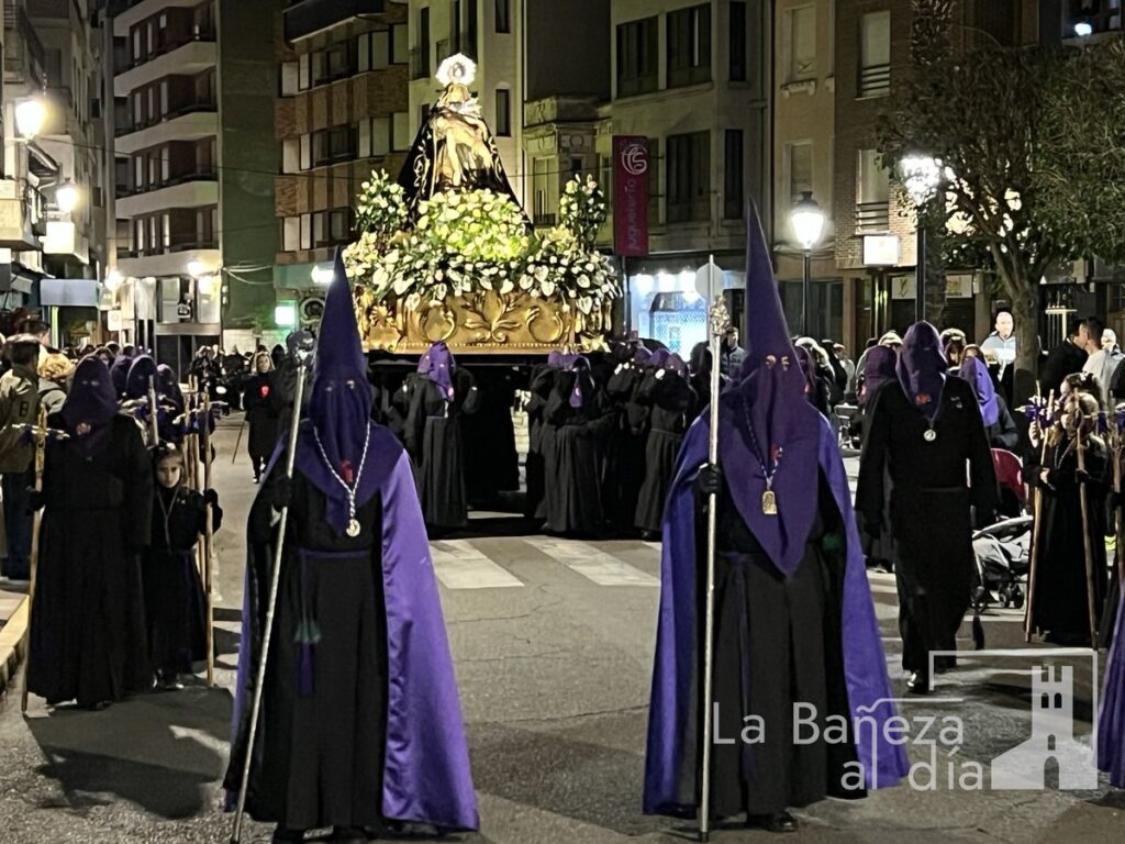 Tras la finalización de la novena, la imagen de la Virgen salió del templo para dar inicio a la procesión organizada por la Cofradía de Nuestra Señora de las Angustias y Soledad de La Bañeza. El cortejo contó con la presencia de autoridades locales, así como representantes de los cabildos de las cofradías de Nuestro Padre Jesús Nazareno, la Vera Cruz y la Penitencial de las Águedas.