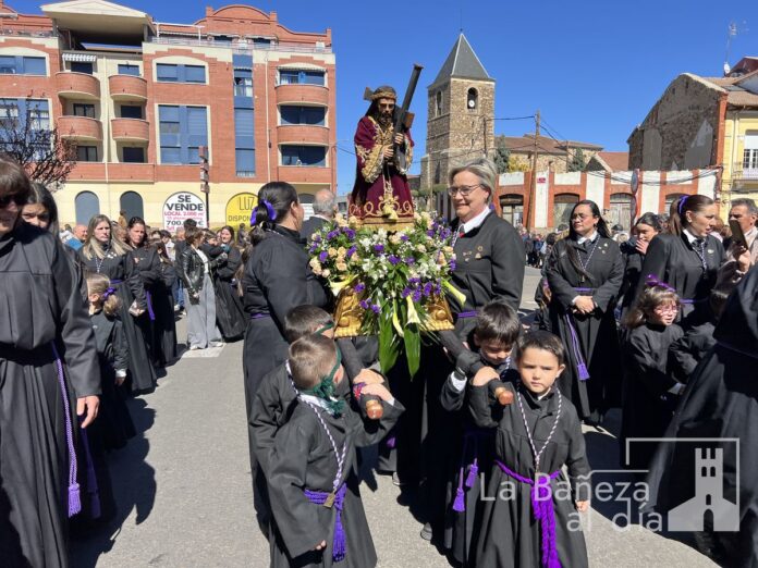 La tradición y el buen tiempo se dieron la mano en la mañana de este Miércoles Santo en La Bañeza, donde cientos de vecinos y visitantes participaron en la esperada procesión del Santo Potajero. Las altas temperaturas y el ambiente primaveral acompañaron una jornada marcada por la emoción, la devoción y la convivencia.