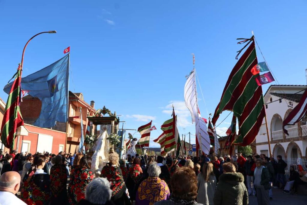 Aun así, los pendones volvieron a llenar de color las calles de la localidad en una jornada en la que también destacó la presencia de la Virgen del Rosario, que continuó participando en la procesión tras su regreso el pasado año después de cerca de tres décadas de ausencia.