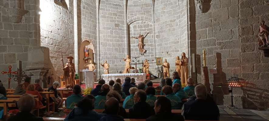 Tras reanudar la marcha y recorrer los últimos 12 kilómetros, los romeros avanzaron entre trigales y encinas, con vistas a la Sierra de Béjar en el horizonte, hasta llegar a Fuenterroble de Salvatierra. En su iglesia, se celebraron las estaciones finales dedicadas a San Pablo, San Juan y el discípulo de Emaús.